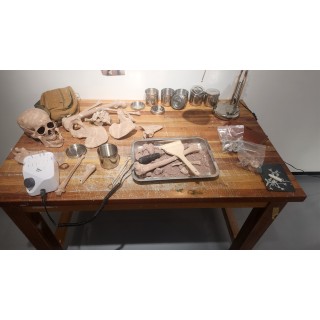 Photo Description: The desk valve of an archaeologist who discovered what artist Joo Hyun-soo imagines as a future clone (there is also the number of the company he created), the future set by artist Joo Hyun-soo